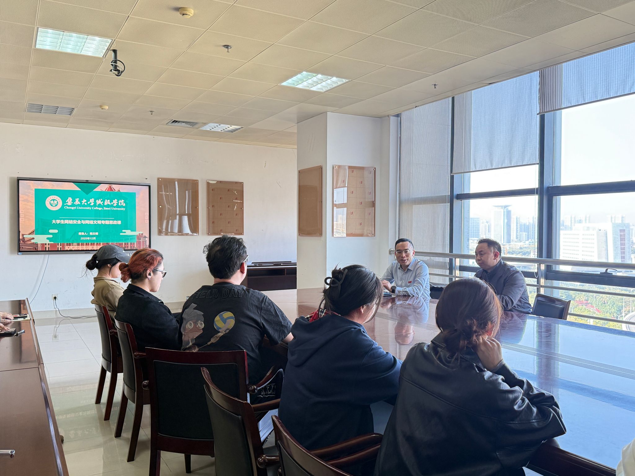 12月10日,学院副院长陈三明在景祺楼12楼会议室,以《大学生网络安全与网络文明》为题,为继续教育学院、国际学院的辅导员及学生代表讲授了一堂深刻而生动的专题思政课。